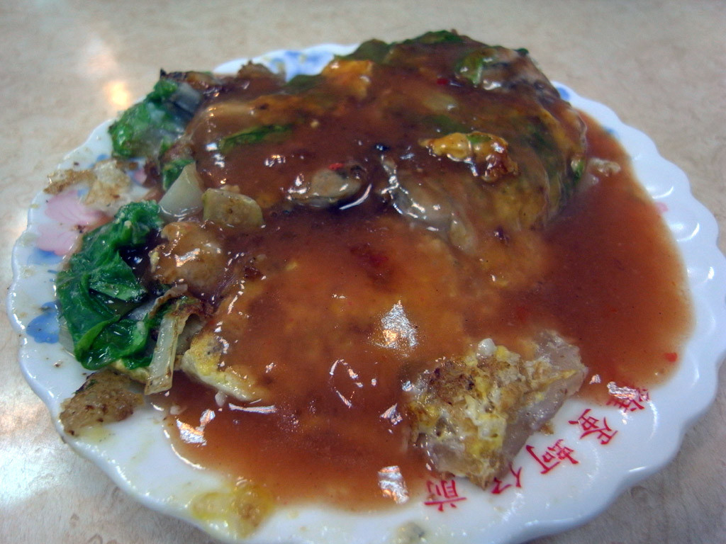 食べそこねていた牡蠣のオムレツ(蚵仔煎:オアチュン)を食べたくって、屋台のお店を探したのですが見つからず、屋台脇にあるお店で頂きました。ホクホクで美味しいですねぇ。