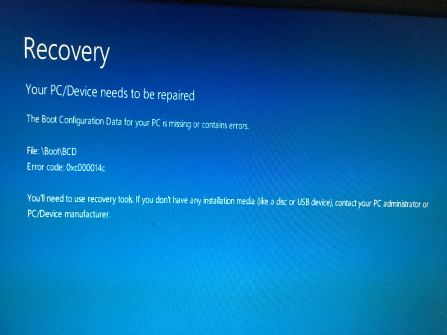 Error code:¡¡0xc000014c