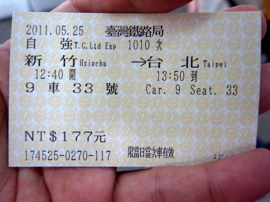 購入したのは特急自強号のきっぷ。お値段は177TWD。新幹線が290TWDなのでだいぶ安いですな。